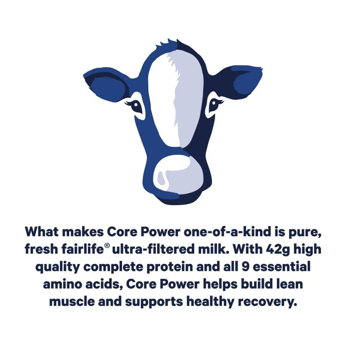 Whether you’re working towards a new personal record or you’re just trying to stay fit, you should make the most of your workouts, which includes your recovery.That’s why Core Power protein shakes are designed to help you refuel, rebuild, rehydrate and recover from your workout.With Core Power Elite Chocolate, you get a protein shake that’s packed with 42g of high quality protein, all 9 essential amino acids, electrolytes and a creamy chocolate taste. Its high quality protein from fairlife ultra-filtered milk helps you recover after each and every workout.These delicious ready-to-drink protein shakes come in a variety of different flavors, so you can always satisfy your taste buds.Fueled by fairlife ultra-filtered milk, Core Power Elite is about helping you recover after a workout so you feel good and can tackle the rest of your day.Recover & Build Lean Muscle.