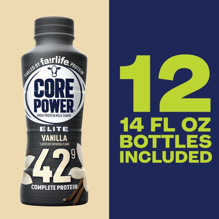 Fairlife Core Power Elite protein shakes have carved a significant niche in the fitness world, largely due to their impressive protein content. Packing a substantial 42 grams of protein per 14-ounce bottle, they are a convenient and potent option for post-workout recovery or as a high-protein snack to fuel your day. This high protein content, derived from Fairlife’s ultra-filtered milk, is a major selling point for athletes and fitness enthusiasts looking to build and repair muscle.